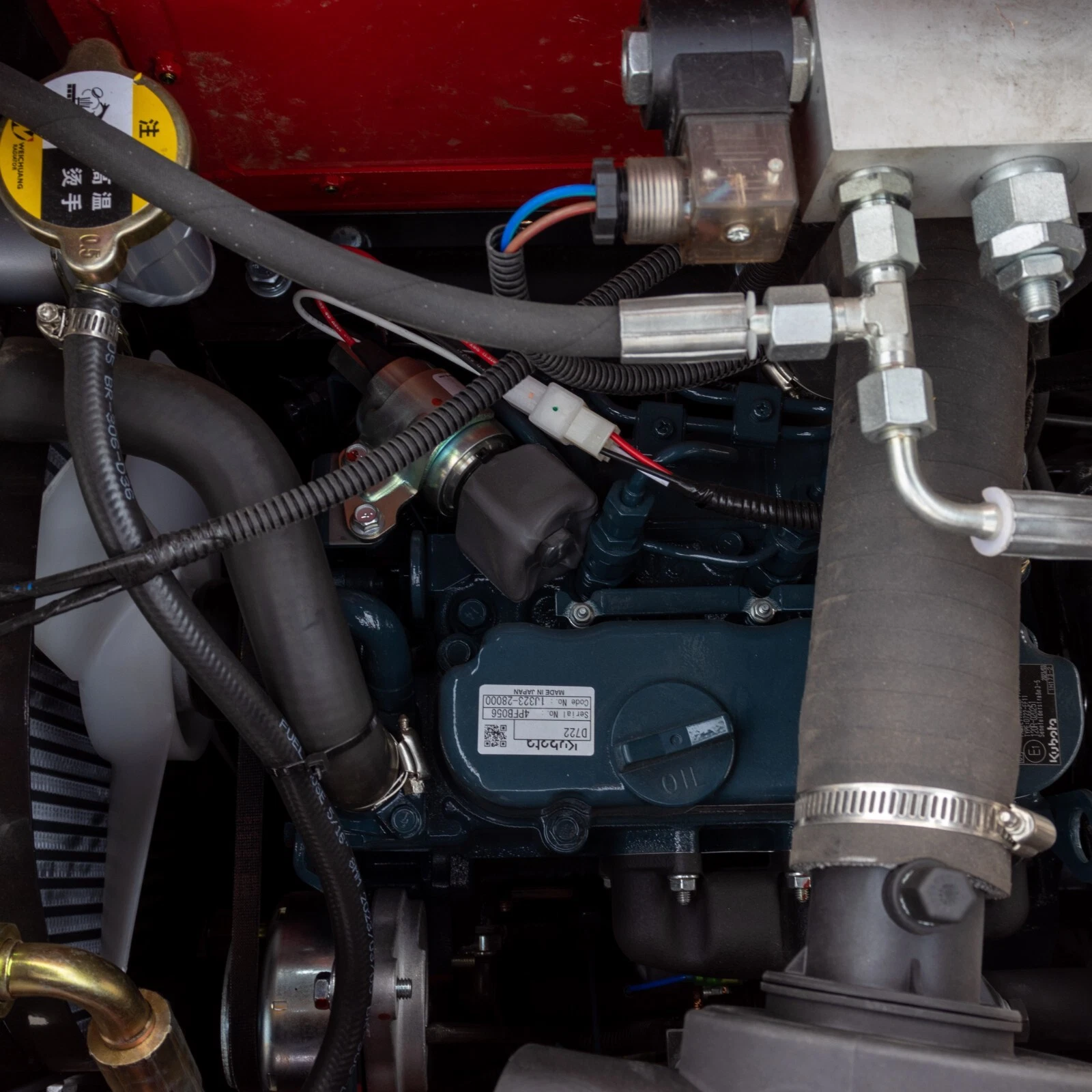 Engine: Kubota D902, 3-cylinder, liquid-cooled industrial diesel