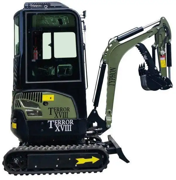 The TYPHON TERROR XVIII Prestige Mini Excavator is a compact and reliable 2-ton machine designed for small and medium construction projects. Its durable design and compact size allow easy maneuverability in farms, gardens, parks, orchards, and residential job sites.