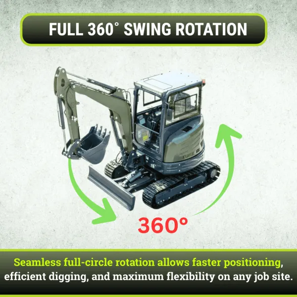 "Very pleased with the excavator. Happy I upgraded to the Kubota engine. It's quiet and powerful. Highly recommend this purchase."