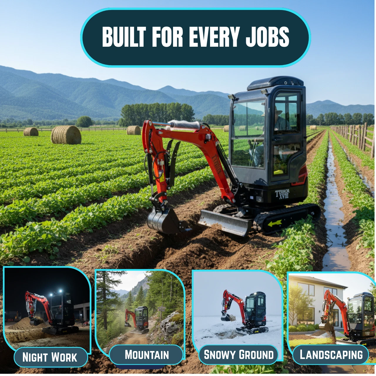 The TERROR XVIII Prestige is the only machine in its class with a fully enclosed cabin featuring both air conditioning and a heater β keeping operators comfortable from freezing winters to scorching summers. Intuitive pilot and joystick controls ensure smooth, responsive handling from day one β even for first-time operators.